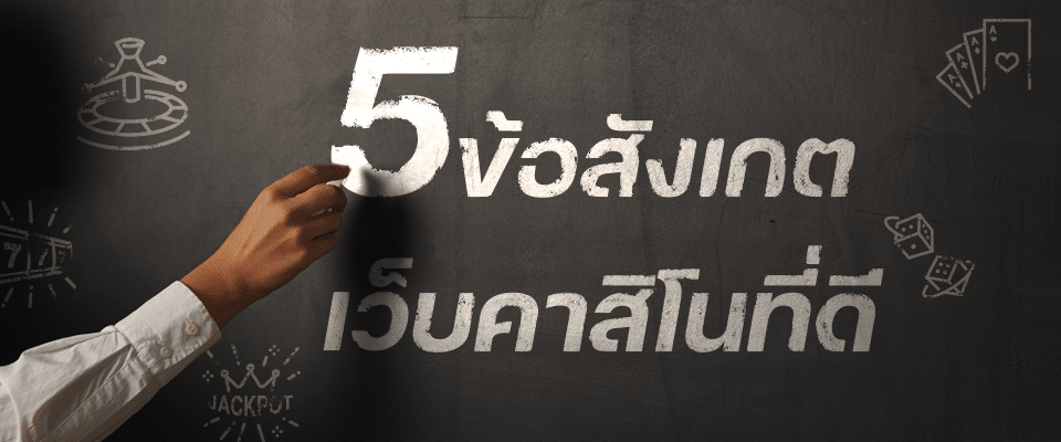 การจะเลือกเว็บคาสิโนออนไลน์เล่นสักหนึ่งเว็บเป็นสิ่งที่อาจจะทำให้ลำบากใจในบางครั้ง เพราะแต่ละเว็บไซต์ก็มีข้อดี ข้อเด่นแตกต่างกัน โดยมี 5 ข้อสังเกตง่ายๆ ดังต่อไปนี้